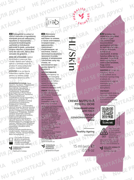 Ez a könnyű, gyorsan felszívódó HL/Skin Tápláló Szemkörnyékápoló Krém tudományos koreai szépségápolási alapokon nyugszik és adenozinnal, niacinamiddal, szkvalánnal, valamint természetes növényi vajakkal és olajokkal van dúsítva. Kezeli a ráncokat, a finom vonalakat és a szárazságot az érzékeny szemkörnyéken. Hosszan tartó hidratálást biztosít, segít megkötni a nedvességet, fokozza a bőr simaságát, a üdeségét és a ragyogását. Nem zsíros és smink alá is használható.